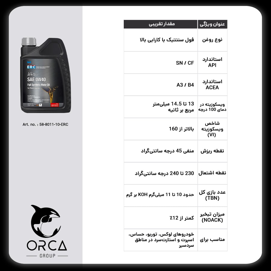 معرفی روغن موتور ERC White SAE 0W40