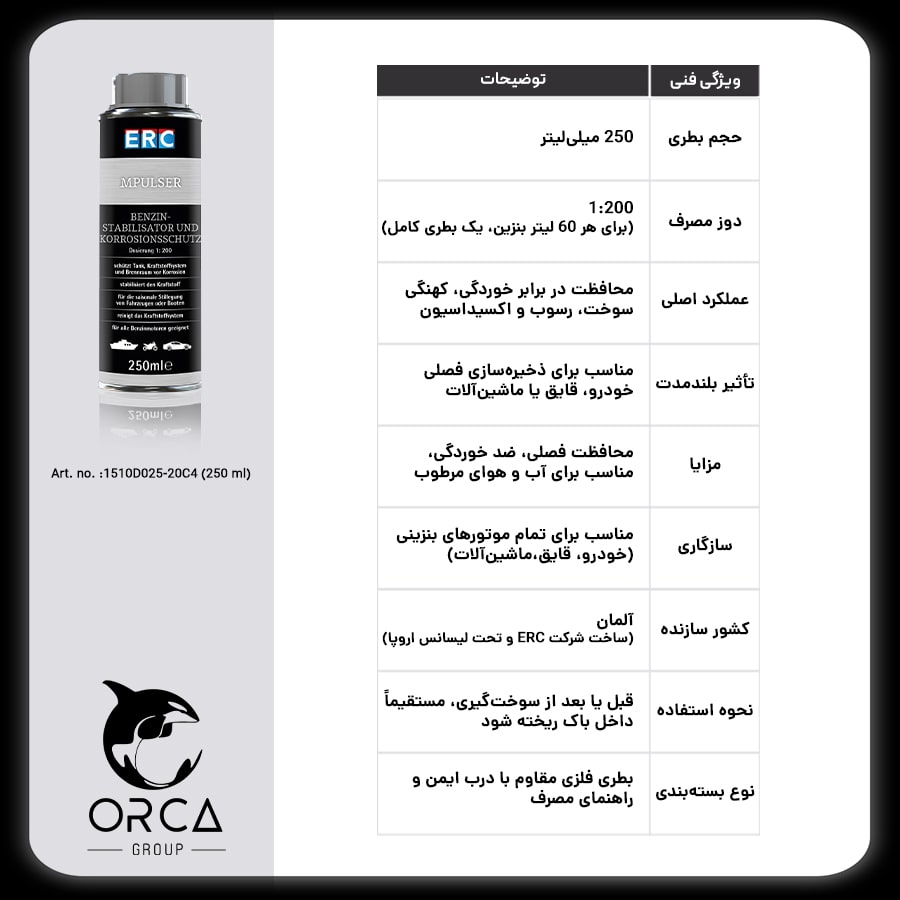 | دوز مصرف | 1:200 (برای هر ۶۰ لیتر بنزین، یک بطری کامل) |